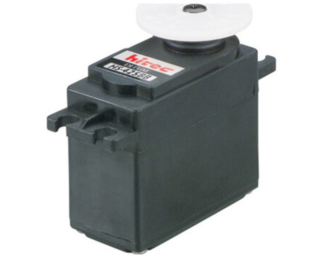 HRC31425SHs-425bb Servo Deluxe 2bb Universal $25.59This is the Hitec/RCD HS-425BB Pro Servo with a FEATURES: Dual Ball Bearings. Indirect Drive. Plastic Gears. YOU WILL RECEIVE: One HS-425BBS Servo One Servo Accessory Bag (grommets, screws, bushings, horns) SPECIFICATIONS: length: 41mm (1.6") Weight: 45.5 (1.60oz) width: 20mm (0.8") Transit Time: 0.20sec height: 36.5mm (1.4") Torque: 45.9 oz-in COMMENTS: This servo shares the same case with the HS-300 servos. The biggest difference is that this servo has dual ball bearings, making it faster, with more torque, and less slop. NXD 9/18/96 ir/jl updt jxs 2/13/06 & |