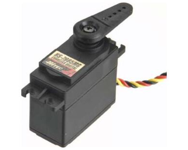 FEATURES: Ideal for high performance aircraft to 1/4 scale, .30 and larger helicopters, and steering and throttle for 1/10 and 1/8 scale vehicles Gold plated contacts Metal gears Dual ball bearings High speed Water and dust resistant YOU WILL RECEIVE: 2" servo arm Heavy duty 1-1/2" servo arm Heavy duty 2-3/4" servo arm Black disc servo horn Four 2 x 14mm mounting screws Four brass eyelets Four black rubber vibration isolators Plastic case and programming instruction sheet Hitec decals REQUIREMENTS: SPECIFICATIONS: 0.13 sec/60 degrees at 6.0V Torque: 144.42 oz-in at 4.8V (10.4 kg-cm) 172.20 oz-in at 6.0V (12.4kg-cm) Length: 1.57" (40mm) Width: 0.78" (20mm) Height: 1.45" (37mm) Weight: 2.18oz (62g) COMMENTS: armature wrapped with wire that spins inside the magnets. In a Coreless design, the armature uses a wire mesh that forms a cup that spins around the outside of the magnet. This arrangement is much lighter resulting in smoother operation and faster response time. cnh 7/8/08 ir/jxs |