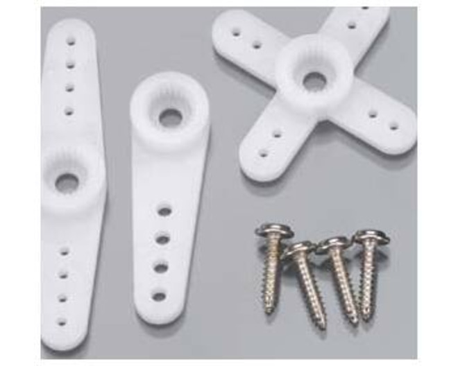 FEATURES: YOU WILL RECEIVE: (3) servo horn screws (phillips head) (1) full straight horn (1) half straight horn (1) cross horn REQUIREMENTS: SPECIFICATIONS: Length of half straight horn: 25.4mm (1") Length of cross horn: 24mm (0.95") mlm 8.03.06 ir/jxs |