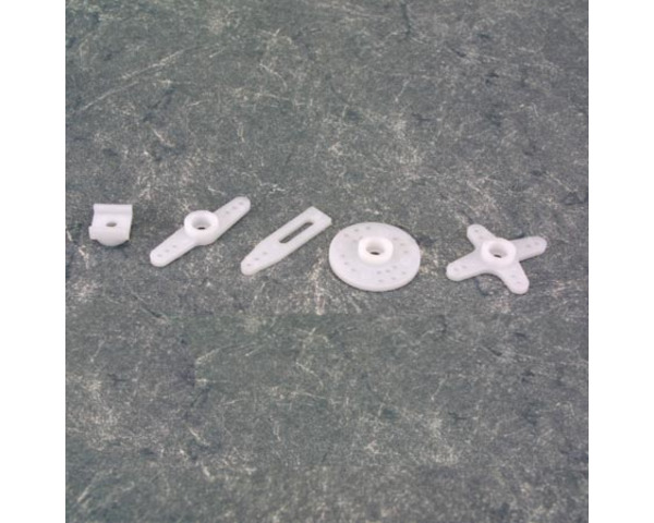 YOU WILL RECEIVE: 1-Servo Horn (long arm) 1-Servo Horn w/Slide bracket (Adjustable) 1-Servo Horn (small "X" shaped) FEATURES: White plastic servo horns The small white plastic slide bracket is designed to slide onto the adjustable servo horn. 6-13-94sk |