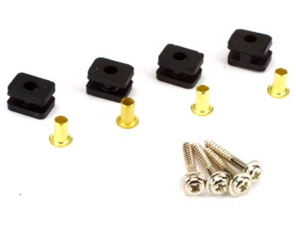 YOU WILL RECEIVE: 4-Grommets (black rubber) 5-Bushings (brass colored) 4-Screws SPECIFICATIONS: Screws: 4x10mm Screws: 3x7mm 6-13-94sk |